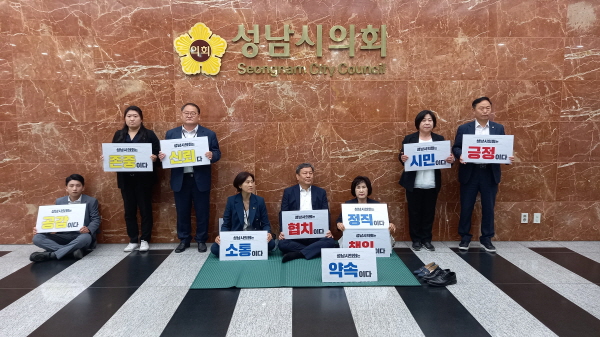 ¹ÎÁÖ´ç ÀÇ¿ø 15¸íÀº ±âÀÚȸ°ßÀå¿¡¼­ ¡®¼º³²½ÃÀÇȸ´Â ¾à¼ÓÀÌ´Ù, ½Å·Ú´Ù, ÇùÄ¡´Ù¡¯µî °¢±â ´Ù¸¥ ÇÇÄÏÀ» µé¾î À̸ñÀ» ²ø¾ú´Ù.