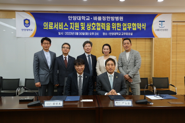 ¾È¾ç´ëÇб³´Â ¹Ù¸¦Á¤Çѹ溴¿ø°ú ÀǷἺñ½º Áö¿ø ¹× »óÈ£Çù·ÂÀ» À§ÇÑ ¾÷¹«Çù¾àÀ» ü°áÇß´Ù°í 5ÀÏ ¹àÇû´Ù.