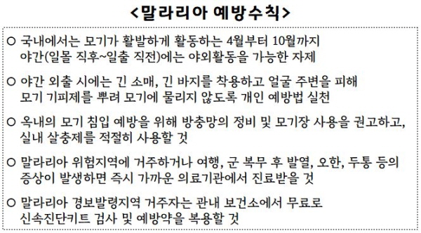 ÆòÅýô 19ÀÏ Àü³âµµ¿¡ ´ëºñÇØ ¸»¶ó¸®¾Æ ȯÀÚ ¹ß»ýÀÌ 3.3¹è Áõ°¡ÇÔ¿¡ µû¶ó ±¹³» ¸»¶ó¸®¾Æ À§ÇèÁö¿ªÀÎ ÀÎõ, °æ±â, °¿ø ºÏºÎ¿Í ÇØ¿Ü¿©Çà ½Ã °¨¿°¿¹¹æÀ» À§ÇÑ ¿¹¹æ¼öÄ¢À» ÁؼöÇØ ÁÙ °ÍÀ» ´çºÎÇß´Ù.