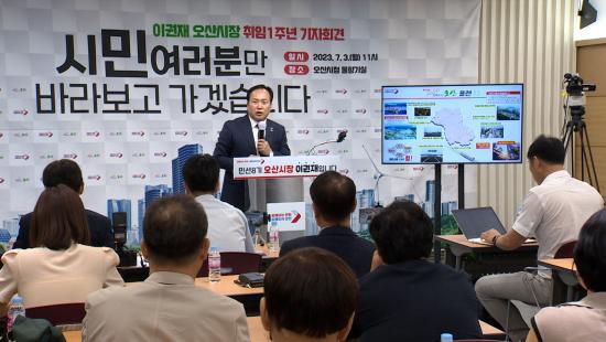 À̱ÇÀç ¿À»ê½ÃÀåÀÌ ¹Î¼±8±â ÃëÀÓ 1ÁÖ³âÀ» ¸Â¾Æ ±âÀÚȸ°ßÀ» ¿­°í Áö³­ 1³â°£ Áö¿ª¹ßÀüÀ» À§ÇØ ÃßÁøÇß´ø »ç¾÷ÀÇ ¼º°ú¿Í ÇâÈÄ °èȹ¿¡ ´ëÇØ ¹ßÇ¥Çß½À´Ï´Ù.]
