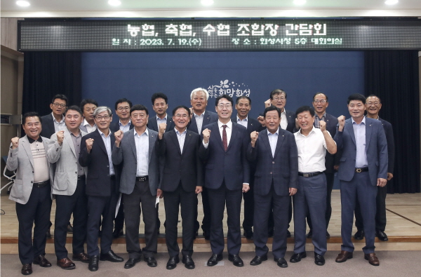 Á¤¸í±Ù È­¼º½ÃÀåÀÌ ¹Î¼±8±â 1ÁÖ³âÀ» ¸Â¾Æ ³óÃà¼öÇù Á¶ÇÕÀåµé°ú ³óÁ¤ Çö¾È»çÇ×À» °øÀ¯Çϰí ÀǰßÀ» ¼ö·ÅÇϰíÀÚ 19ÀÏ ½Ãû ´ëȸÀǽǿ¡¼­ ³óÁ¤°£´ãȸ¸¦ °³ÃÖÇß´Ù°í 20ÀÏ ¹àÇû´Ù.