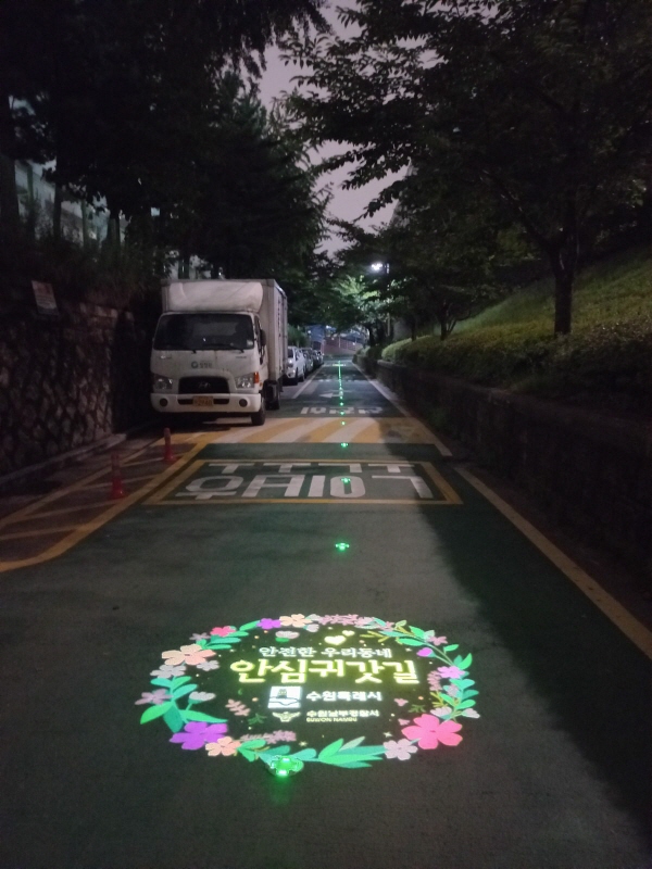 ·Î°íÁ§Å͸¦ ÀÌ¿ëÇØ ¾îµÎ¿î °ñ¸ñ±æ¿¡ ¡®¾È½É±Í°«±æ¡¯, ¡®¹üÁË ¾ø´Â ¼ö¿ø ¾ÈÀüÇÑ ¿ì¸®µ¿³×¡¯¿Í °°Àº ¹®±¸¿Í ²É À̹ÌÁö µîÀ» ¿ø»öÀ¸·Î Åõ¿µÇϰí, Â÷µµ¿Í º¸µµ ±¸ºÐÀÌ ¾ø´Â À̸鵵·Î¿¡´Â µµ·ÎÇ¥Áöº´À» ¼³Ä¡ÇØ °ñ¸ñÀ» ÇÑ°á ¹à°Ô ¸¸µé¾ú´Ù.