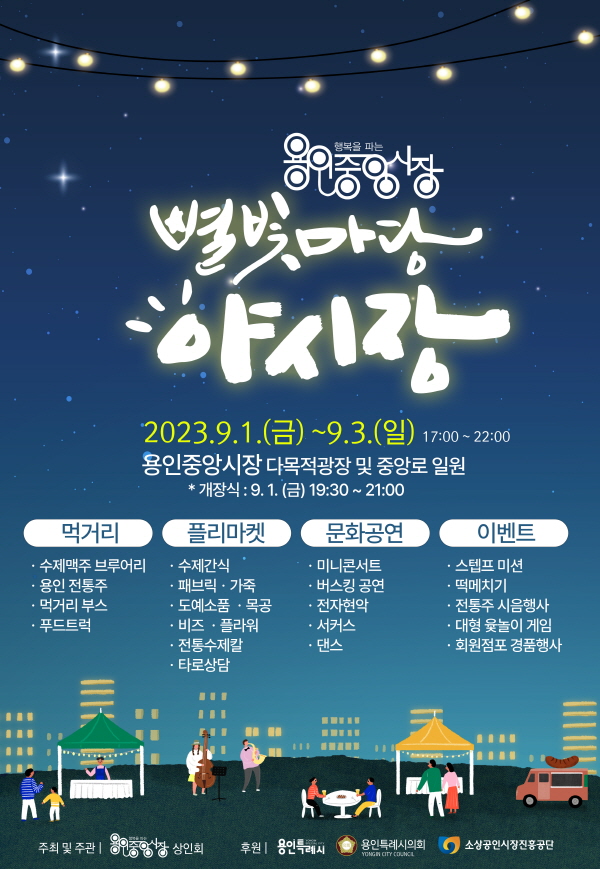 ¿ëÀÎÆ¯·Ê½Ã´Â ´ÙÀ½ ´Þ 1ÀϺÎÅÍ 3ÀϱîÁö óÀα¸ ±è·®À嵿 ¿ëÀÎÁß¾Ó½ÃÀå¿¡¼ ¡®¿ëÀÎÁß¾Ó½ÃÀå º°ºû¸¶´ç ¾ß½ÃÀ塯À» óÀ½À¸·Î °³ÀåÇÑ´Ù°í 24ÀÏ ¹àÇû´Ù.
