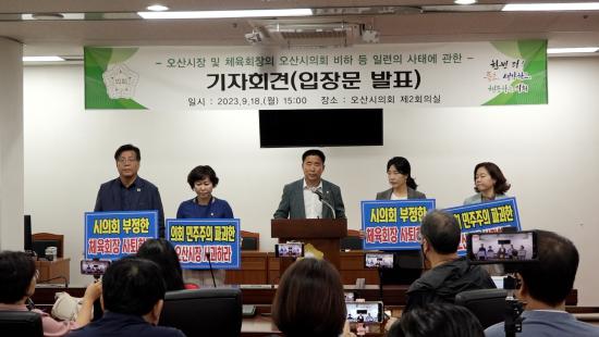 ÀÌ¿¡ ¿À»ê½ÃÀÇȸ ´õºÒ¾î¹ÎÁÖ´ç ÀÇ¿øµéÀÌ 18ÀÏ ±âÀÚȸ°ßÀ» ¿°í ÀÇȸÀÇ ¿¹»ê ½ÉÀDZÇÀ» ¹«½ÃÇÑ Ã¼À°È¸ÀåÀÇ ÀÚÁø »çÅðÀ» Ã˱¸Çϰí À̱ÇÀç ½ÃÀåÀÇ Àç¹ß¹æÁö´ëÃ¥ ¹× »ç°ú¸¦ ¿ä±¸Çß½À´Ï´Ù.