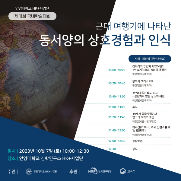 ¾È¾ç´ëÇб³ HK+»ç¾÷´ÜÀº '±Ù´ë¿©Çà±â¿¡ ³ªÅ¸³ µ¿¼¾çÀÇ »óÈ£ °æÇè°ú ÀνÄ'À» ÁÖÁ¦·Î Á¦11ȸ ±¹³»Çмú´ëȸ¸¦ ¿À´Â 10¿ù 7ÀÏ °³ÃÖÇÑ´Ù°í 26ÀÏ ¹àÇû´Ù.