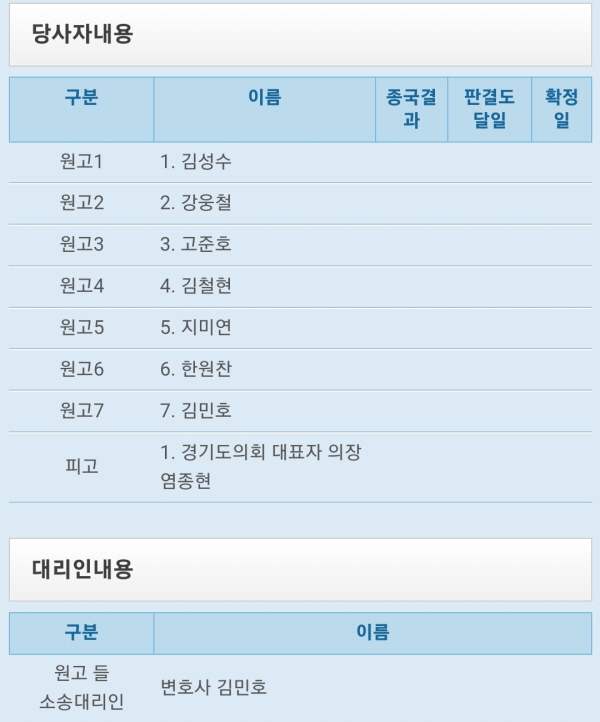¾Õ¼ Áö³ 10¿ù10ÀÏ ¼ö¿ø°íµî¹ý¿ø Á¦1ÇàÁ¤ºÎ(ºÎÀåÆÇ»ç ³ë°æÇÊ)´Â µµÀÇȸ ±¹¹ÎÀÇÈû ¼Ò¼Ó ±è¹ÎÈ£, Áö¹Ì¿¬, °íÁØÈ£, ±è¼º¼ö, ±èöÇö, °¿õö, ÇÑ¿øÂù ÀÇ¿øÀÌ °æ±âµµÀÇȸ¸¦ »ó´ë·Î ³½ '»óÀÓÀ§¿øÈ¸ À§¿ø °³¼±ÀÇ °Ç' ÁýÇàÁ¤Áö »ç°Ç Ç×°í¸¦ ±â°¢ÇßÀ¸¸ç ÇöÀç º»¾È ¼Ò¼ÛÁßÀÌ´Ù.