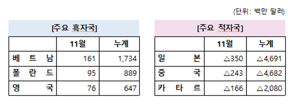 2023³âµµ 11¿ù ¹«¿ª¼öÁö´Â ¼öÀÔ¾×ÀÌ Å« ÆøÀ¸·Î °¨¼Ò(¡â24¾ï 7õ¸¸ ´Þ·¯)ÇÔ¿¡ µû¶ó, Àü³â Ýï ¹«¿ª ÀûÀÚ ±Ô¸ð°¡ ´ëÆø ¿ÏÈ­µÇ¾î ¡â4¾ï 2õ¸¸ ´Þ·¯ ±Ô¸ð ÀûÀÚ¸¦ ±â·ÏÇß´Ù.