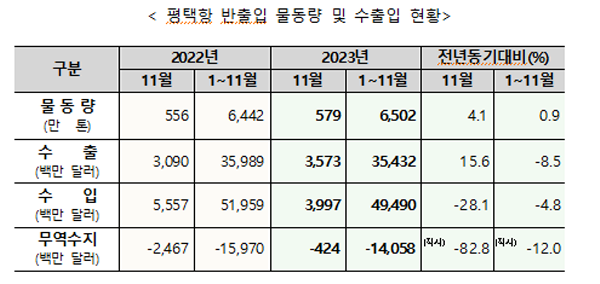 2023³âµµ 11¿ù ÆòÅÃÁ÷ÇÒ¼¼°ü ¼öÃâÀÔ µ¿Çâ