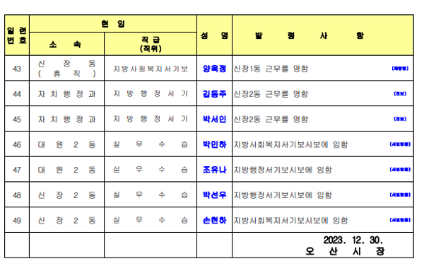 ¿À»ê½Ã Àλç¹ß·É(2023.12.30.)