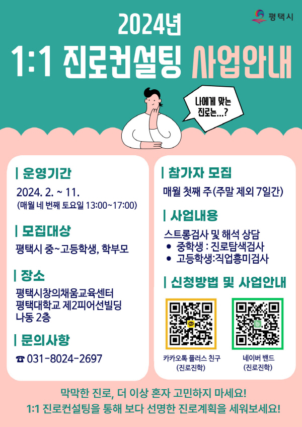 ÆòÅýÃ(½ÃÀå Á¤Àå¼±)°¡ Áö¿ª ³» û¼Ò³âµéÀÇ Áø·Î Ž»ö ¹× ¸ÂÃãÇü Áø·Î ¼³°è¸¦ À§ÇØ 2024³âµµ 1:1 ¸ÂÃãÇü Áø·ÎÄÁ¼³ÆÃÀ» ¿î¿µÇÑ´Ù°í 30ÀÏ ¹àÇû´Ù.