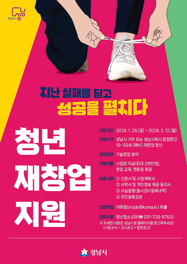 ¼º³²½Ã´Â ¿À´Â 2¿ù 12ÀϱîÁö ¡®Ã»³â Àçâ¾÷ Áö¿ø»ç¾÷¡¯¿¡ Âü¿©ÇÒ (¿¹ºñ)Àçâ¾÷ÀÚÀÇ ½ÅûÀ» ¹Þ´Â´Ù°í 30ÀÏ ¹àÇû´Ù.