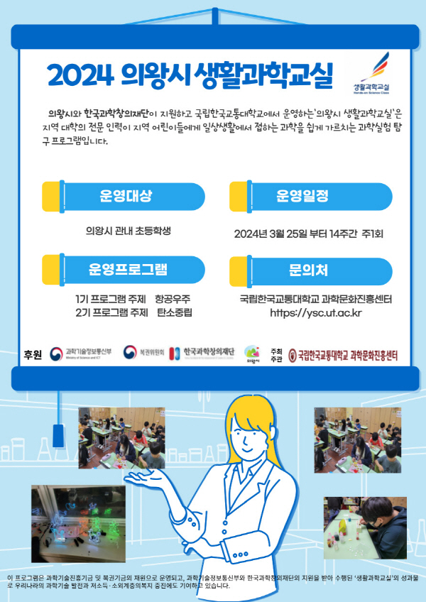 ÇÑÆí, âÀǰúÇб³½Ç·Î ¿î¿µµÇ´Â ¡®¿Â¶óÀÎ »ýȰ°úÇб³½Ç¡¯Àº ¿À´Â 5¿ù °³°­Çϸç, ½ÅûÀÚ´Â 4¿ù Áß °ø°íÇÏ¿© ¸ðÁýÇÒ ¿¹Á¤ÀÌ´Ù. ÀÚ¼¼ÇÑ »çÇ×Àº ±¹¸³Çѱ¹±³Åë´ëÇб³ °úÇй®È­ÁøÈï¼¾ÅÍ È¨ÆäÀÌÁö(http://www.ut.ac.kr)¸¦ ÅëÇØ È®ÀÎ ÇÒ ¼ö ÀÖ´Ù.