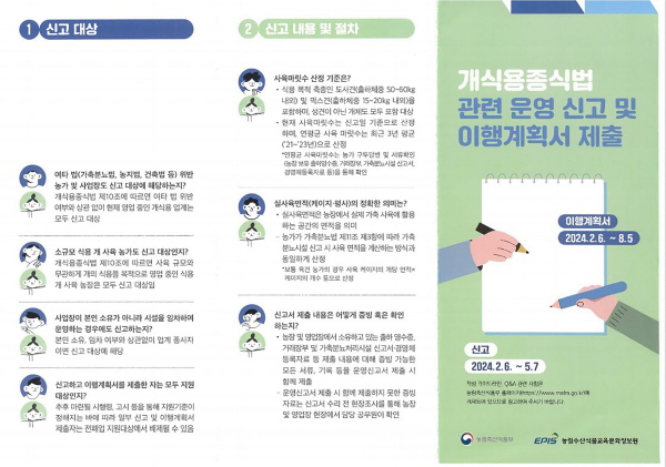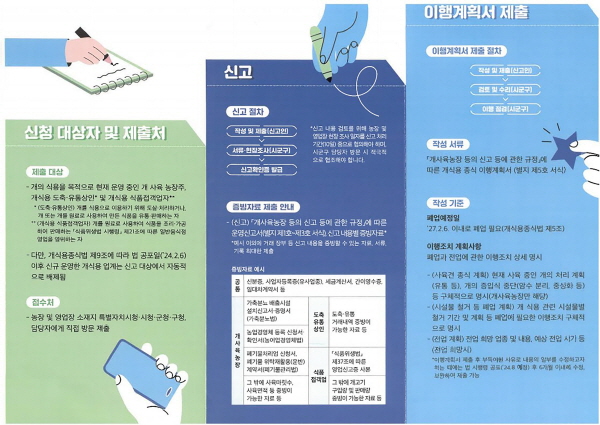 ½Ä¿ëÀ» À§ÇØ °³¸¦ »çÀ°ÇÏ´Â ³óÀåÁÖ(°³»çÀ°³óÀå) ¹× µµ»ì¡¤À¯ÅëÇϰųª ½Ä¿ëÀ» ¸ñÀûÀ¸·Î °³¸¦ ¿ø·á·Î »ç¿ëÇÏ¿© ¸¸µç ½ÄǰÀ» À¯Å롤ÆÇ¸ÅÇÏ´Â ÀÚ´Â 5¿ù 7ÀϱîÁö ÁõºùÀÚ·á¿Í ÇÔ²² ¿î¿µ½Å°í¼¸¦ ÀÛ¼º¡¤Á¦ÃâÇØ¾ß Çϸç 8¿ù 5ÀϱîÁö Àü¡¤Æó¾÷ ÀÌÇà°èȹ¼¸¦ Á¦ÃâÇØ¾ß ÇÑ´Ù.
