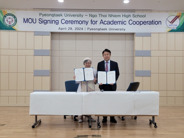 ÆòÅôëÇб³(ÃÑÀå À̵¿Çö)¿Í º£Æ®³² ȣġ¹Î NGO THOI NHIEM(ÀÀ¿ÀÅäÀÌ´Ï¿¥) °íµîÇб³(ºÎÀÌ»çÀå ÆÊÆ¼ÅõÀ̺ó, PHAM THI THUY VINH)´Â 4¿ù 29ÀÏ ÆòÅôëÇб³ eÄÁ¹öÀü½º Ȧ¿¡¼ ±¹Á¦±³·ù Çù·Â °ü°è¸¦ À§ÇÑ ¾çÇØ°¢¼(MOU)¸¦ ü°áÇß´Ù.