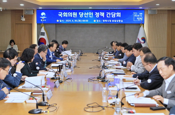 À̳¯ °£´ãȸ´Â ÆòÅýà ÁÖ¿ä Çö¾È°ú ÇٽɽÃÃ¥ ¹× ±¹°¡¿¹»ê È®º¸ ¹æ¾ÈÀ» °øÀ¯Çϰí ÇØ°á¹æ¾ÈÀ» ÇÔ²² ¸ð»öÇϱâ À§ÇØ ¸¶·ÃµÈ ÀÚ¸®·Î, È«±â¿ø(ÆòÅà °©), ±èÇöÁ¤(ÆòÅà º´) ±¹È¸ÀÇ¿ø ´ç¼±ÀÎÀÌ Âü¼®Çß°í, ½Ã¿¡¼­´Â Á¤Àå¼± ½ÃÀå, ºÎ½ÃÀå°ú ½Ç․±¹․¼ÒÀå µî °£ºÎ°ø¹«¿øÀÌ ÇÔ²²Çß´Ù.