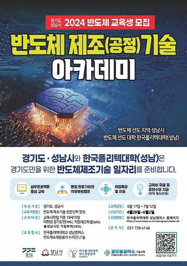 ¼º³²½Ã¿Í °æ±âµµ°¡ ÁÖÃÖÇÏ´Â ¡®¹ÝµµÃ¼ Á¦Á¶±â¼ú ¾ÆÄ«µ¥¹Ì¡¯´Â ¹ÝµµÃ¼ »ê¾÷ Á¦Á¶(°øÁ¤)±â¼ú Àü¹® ±³À°°ú Ãë¾÷ ¿¬°è±îÁö ¿ø½ºÅéÀ¸·Î Áö¿øÇÏ´Â ÇÁ·Î±×·¥ÀÌ´Ù.
