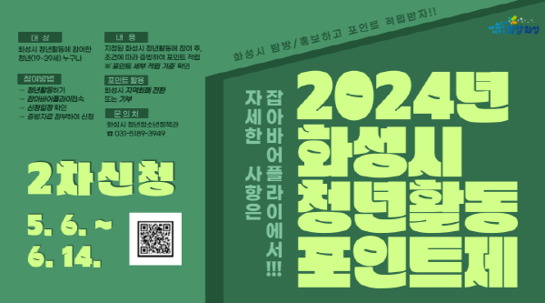 ȼº½Ã(½ÃÀå Á¤¸í±Ù)°¡ 14ÀϱîÁö ¡®2024³â û³âȰµ¿Æ÷ÀÎÆ®Á¦¡¯ Àû¸³½Åû 2Â÷ Á¢¼ö¸¦ ½ÃÀÛÇÑ´Ù°í ¹àÇû´Ù.