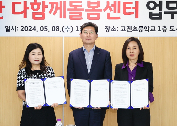¼°æ¶õ °íÁøÃÊ ±³ÀåÀº ¡°±³»ç ½ÃÀý ²Þ²ã¿Â Áö¿ª»çȸ¿ÍÀÇ Çù¾÷ ¸ðµ¨ÀÎ ¡®Çб³ ¾È ´ÙÇÔ²²µ¹º½¼¾ÅÍ¡¯¸¦ °íÁøÃÊ¿¡ À¯Ä¡ÇÒ ¼ö ÀÖ¾î ¿µ±¤ÀÌ´Ù¡±¶ó¸ç ¡°½Ã¿Í ±³À°Áö¿øÃ»ÀÌ °ü½ÉÀ» °®°í Áö¿øÇØÁ༠°í¸¿°í, Çлýµé¿¡°Ô À¯³â½ÃÀýÀÇ ÁÁÀº Ãß¾ïÀ¸·Î ³²µµ·Ï ²ÞÀ» Ű¿ì´Â ÅÍÀüÀ¸·Î ¸¸µé¾î °¡°Ú´Ù¡±°í ¸»Çß´Ù.