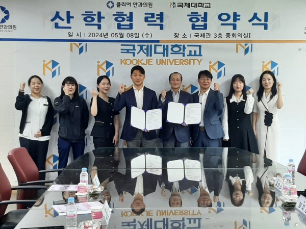 ±¹Á¦´ëÇб³(ÃÑÀå ÀÓÁö¿ø)´Â 8ÀÏ ±¹Á¦°ü 3Ãþ ÁßȸÀǽǿ¡¼ Ŭ¸®¾î ¾È°ú ÀÇ¿ø(´ëÇ¥¿øÀå °µ¿¿Ï)°ú »êÇп¬ Çùµ¿ Çù·Â¿¡ °üÇÑ ¾÷¹«Çù¾à½ÄÀ» ü°áÇß´Ù°í ¹àÇû´Ù.