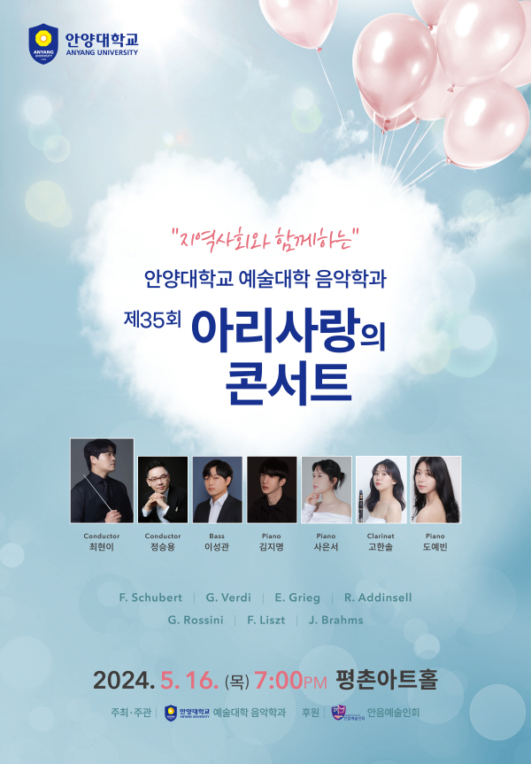 ¾È¾ç´ëÇб³ ( ÃÑÀå À層¼ö ) À½¾ÇÇаú ( ÇаúÀå ¹é°æ¿ø ) ´Â ¡® Á¦ 35 ȸ ¾Æ¸®»ç¶ûÀÇ Äܼ­Æ® ¡¯ ¸¦ 16 ÀÏ °³ÃÖÇÑ´Ù°í ¹àÇû´Ù.
