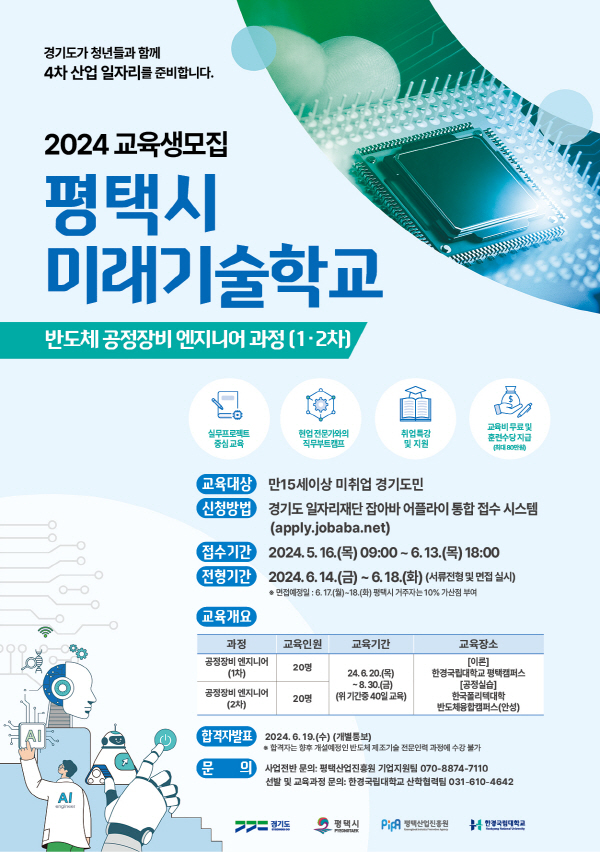 ÆòÅýÃ(½ÃÀå Á¤Àå¼±)´Â ¿À´Â 6¿ù 20ÀϺÎÅÍ ¹ÝµµÃ¼ ½Ç¹« ±â¼ú ÀηÂÀ» À°¼ºÇÏ´Â ¡®2024³â ÆòÅýà ¹Ì·¡±â¼úÇб³¡¯ÀÇ µÎ ¹øÂ° ÇÁ·Î±×·¥ÀÎ ¹ÝµµÃ¼ °øÁ¤Àåºñ ¿£Áö´Ï¾î 1¡¤2Â÷ °úÁ¤À» ¿î¿µÇÑ´Ù°í ¹àÇû´Ù.