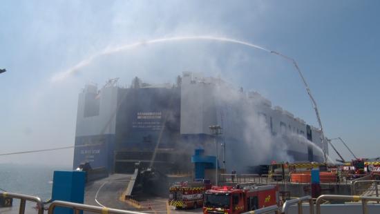 ÈÆ·ÃÀÌ ½ÃÀÛµÈ ¿ÀÈÄ 2½Ã°æ ÆòÅÃÇ׿¡ Á¤¹ÚÇÑ ´ëÇü ÀÚµ¿Â÷ ¿î¹Ý¼± ¿£Áø½Ç¿¡¼ ÈÀç°¡ ¹ß»ýÇÏ°í ¼±½Ç¿¡ ¼±¿øµéÀÌ °í¸³µÈ »óȲ¿¡¼ ´Ù·®ÀÇ À§Çè¹°ÀÌ ´©ÃâµÇ±â ½ÃÀÛÇÏ¿´½À´Ï´Ù.