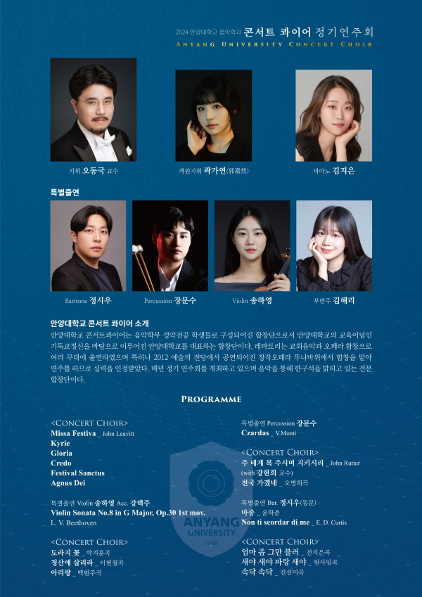 ¾È¾ç´ëÇб³ ¾Æ¸®È¦¿¡¼ 5¿ù 31ÀÏ Àú³á 7½Ã ¿¸®´Â ÄܼƮ ÄâÀ̾î Á¤±â¿¬ÁÖȸ¿¡¼´Â Á¸·¹ºøÀÇ ¡®ÃàÁ¦¹Ì»ç¡¯¿Í ¹ÚÁöÈÆ °î ¡®µµ¶óÁö²É¡¯, ¿Àº´Èñ °î ¡®Ãµ±¹ °¡°Ú³×¡¯, ÀüÁöÀº °î ¡®¾ö¸¶ Á» ±×¸¸ ºÒ·¯¡¯ ¸¼°í ¾Æ¸§´Ù¿î ¼Á¤À» ´À³¥ ¼ö ÀÖ´Â °îµé°ú Çѱ¹ °¡°îÀ» µé·ÁÁØ´Ù.
