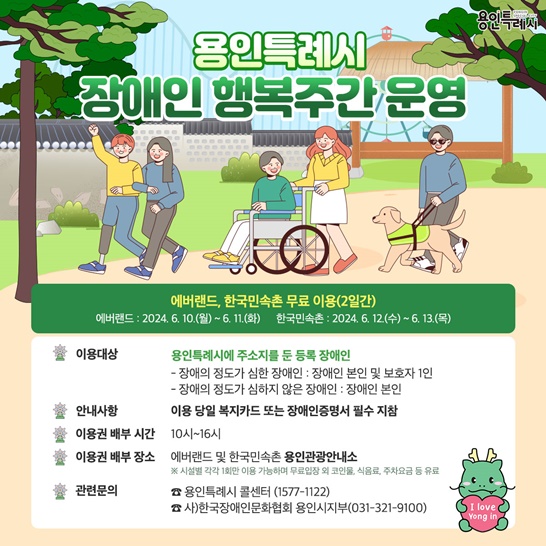ÇູÁÖ°£ ±â°£ ¿ëÀÎÆ¯·Ê½Ã¿¡ µî·ÏµÈ Àå¾ÖÀÎÀº ¿¡¹ö·£µå¿Í ¹Î¼ÓÃÌÀ» ¹«·á·Î ÀÔÀåÇÒ ¼ö ÀÖ´Ù.