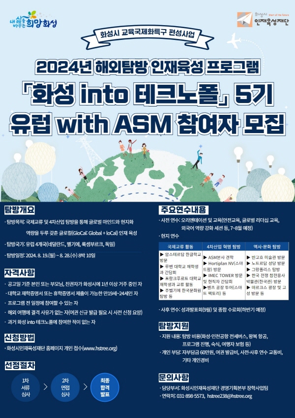 È­¼º½ÃÀÎÀçÀ°¼ºÀç´Ü(´ëÇ¥ÀÌ»ç ÀÓ¼±ÀÏ)ÀÌ ±Û·Î¹ú ÀÎÀç À°¼º ÇÁ·Î±×·¥ÀΡ®È­¼º into Å×Å©³ëÆú' 5±â À¯·´ with ASM ޹æ´ÜÀ» ¸ðÁýÇÑ´Ù°í ¹àÇû´Ù.