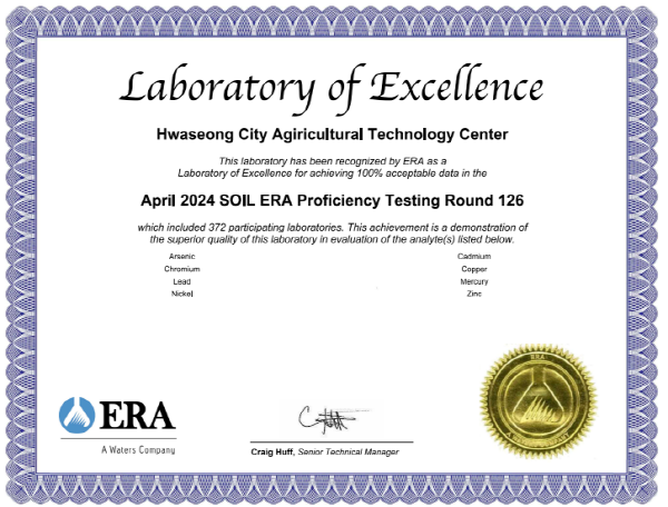 ¹Ì±¹È¯°æÀÚ¿øÇùȸ(ERA, Environmental Resource Associates)¿¡¼­ ¿î¿µÇÏ´Â ±¹Á¦¼÷·Ãµµ Æò°¡´Â Àü¼¼°è ±â°üµé°ú ÀÜ·ù³ó¾à¡¤Á߱ݼӡ¤½Äǰ÷°¡¹° ºÐ¾ß µî¿¡¼­ ºÐ¼®±â°ü, ºÐ¼®¿øÀÇ ¼÷·Ãµµ°¡ ¾î´À Á¤µµÀÎÁö¸¦ ºñ±³ÇÏ´Â ³ó¡¤½Äǰ È­ÇÐ ºÐ¼® ´É·Â Æò°¡·Î ±¹Á¦ÀûÀ¸·Î ÀÎÁöµµ°¡ ³ô¾Æ ¸Å³â ¼¼°è °¢±¹ÀÇ Á¤ºÎ ±â°ü(½Ä¾àó, ³ó»ê¹°Ç°Áú°ü¸®¿ø, ³ó¾÷°úÇпø µî), ¿¬±¸¼Ò, ¹Î°£ ºÐ¼®±â°ü µîÀÌ Æò°¡¿¡ Âü¿©ÇÑ´Ù.