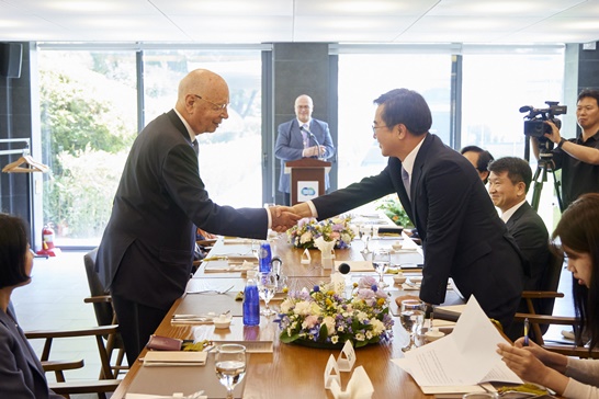 Ŭ¶ó¿ì½º ½´¹ä ȸÀåÀº 1971³â ¼¼°è°æÁ¦Æ÷·³À» ⸳ÇÑ ÈÄ Áö±Ý±îÁö Æ÷·³À» À̲ø¾î ¿Â Àι°ÀÌ´Ù. ±è Áö»ç´Â 2018³â °æÁ¦ºÎÃѸ® ÀçÀÓ ´ç½Ã ½´¹ä ȸÀå°ú ¸¸³ª Çѱ¹ ³» 4Â÷»ê¾÷Çõ¸í¼¾ÅÍ ¼³Ä¡¿Í Çѱ¹ û³âµéÀÇ ¼¼°è°æÁ¦Æ÷·³ ÁøÃâ¿¡ ´ëÇØ ÀǰßÀ» ³ª´« Àο¬ÀÌ ÀÖ´Ù.
