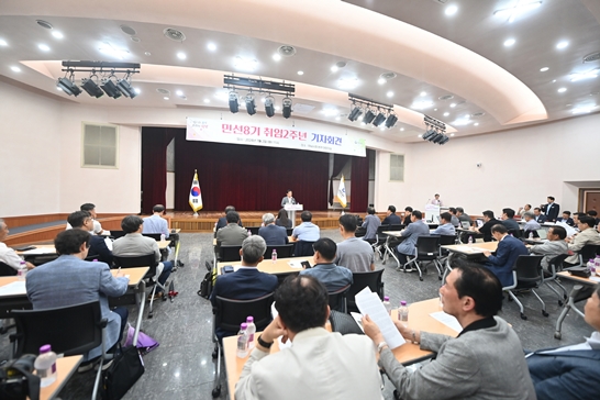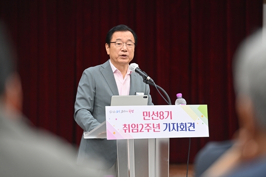 ÀÌÇöÀç ½ÃÀåÀº À̳¯ ½Ãû ´ëȸÀǽǿ¡¼ Áö³ 2³â°£ ÀÌ·é ½ÃÁ¤ ÁÖ¿ä ¼º°ú¿Í ÇâÈÄ °úÁ¦¸¦ ºê¸®ÇÎÇÏ´Â ¡®¹Î¼±8±â ÃëÀÓ 2Áֳ⠱âÀÚȸ°ß¡¯À» ¿°í ¡°°³¹ß»ç¾÷°ú ±â¾÷À¯Ä¡¸¦ ¼Óµµ°¨ ÀÖ°Ô ÃßÁøÇØ ³ª°¡°Ú´Ù¡±¶ó¸ç ÀÌ °°Àº °¢¿À¸¦ ¹àÇû´Ù.