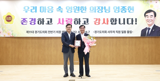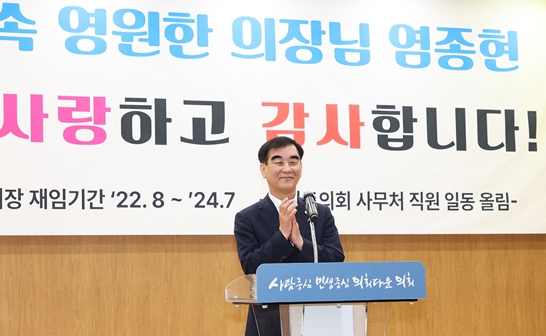 ÀÇȸ»ç¹«Ã³ Á÷¿øµéÀº ¿° ÀÇÀåÀ» ÇâÇØ ¡®½Ã·Ã°ú ¿ª°æÀ» µó°í ÀÇȸ¸¦ ¿Ã¹Ù¸¥ ¹æÇâÀ¸·Î À̲ø¾î Áà °¨»çÇÏ´Ù¡¯, ¡®ÈÇÕ°ú ÅëÇÕÀÇ Á¶À²»ç·Î¼ »ó¡Àû ¼±·Ê¸¦ ³²°å´Ù¡¯, ¡®ÀÛÀº ¹ß°ÉÀ½ÀÌÁö¸¸ µÞ»ç¶÷¿¡°Ô ÀÌÁ¤Ç¥¸¦ ³²±â´Â ÀÇȸ °øÁ÷ÀÚ°¡ µÇ°Ú´Ù¡¯ µîÀÇ ¸Þ½ÃÁö¸¦ ÅëÇØ 11´ë ÀÇȸ Àü¹Ý±â 2³âÀ» À̲ø¾î ¿Â ¿° ÀÇÀå¿¡ ´ëÇÑ Á¸°æÀÇ ¶æÀ» ÀüÇß´Ù.