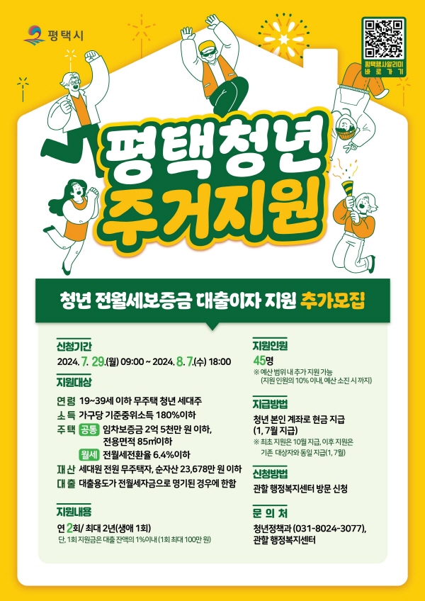 ÆòÅýÃ(½ÃÀå Á¤Àå¼±)´Â û³âÀÇ ÁÖ°Å ¾ÈÁ¤ ¹× Áö¿ª Á¤ÂøÀ» µ½±â À§ÇÑ Áö¿ø Á¤Ã¥À¸·Î ¡®ÆòÅýà û³â Àü¿ù¼¼º¸Áõ±Ý ´ëÃâÀÌÀÚ Áö¿ø¡¯ »ç¾÷ÀÇ ½Å±Ô ´ë»óÀÚ Ãß°¡ ¸ðÁýÀ» ¿À´Â 7¿ù 29ÀϺÎÅÍ 8¿ù 7ÀϱîÁö °ÅÁÖÁö °üÇÒ ÇàÁ¤º¹Áö¼¾ÅÍ¿¡¼­ ½Åû¹ÞÀ» ¿¹Á¤À̶ó°í ¹àÇû´Ù.