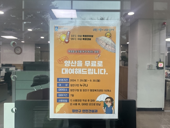 ¼ö¿ø½Ã Àå¾È±¸´Â À帶 ÀÌÈÄ ½ÃÀÛµÉ ¿©¸§Ã¶ Æø¿° ´ëºñ, ÁֹεéÀÌ °Ç°ÇÏ°í ¾ÈÀüÇÏ°Ô ¿©¸§À» º¸³¾ ¼ö ÀÖµµ·Ï Áö³ 7¿ù 29ÀϺÎÅÍ 9¿ù 30ÀϱîÁö ¾ç»ê´ë¿© ¼ºñ½º¸¦ ½Ç½ÃÇÑ´Ù°í ¹àÇû´Ù.