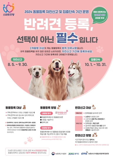 ½Ã´Â ÀÚÁø½Å°í ±â°£ Á¾·á ÈÄÀÎ 10¿ù 1ÀϺÎÅÍ ÇÑ ´Þ µ¿¾È ¹Ý·Áµ¿¹° ÃâÀÔÀÌ ¸¹Àº Àå¼Ò µîÀ» Áß½ÉÀ¸·Î µ¿¹°µî·Ï ¿©ºÎ¸¦ ÁýÁß ´Ü¼ÓÇÒ °èȹÀÌ´Ù.