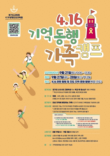 °æ±âµµ±³À°Ã»4.16»ý¸í¾ÈÀü±³À°¿ø, ¡®4.16 ±â¾ï µ¿Çà °¡Á· Ä·ÇÁ¡¯ ½Åû Á¢¼ö ¡°±â¾ï°ú °ø°¨ÀÇ Àǹ̸¦ µÇ»õ±â´Â ½Ã°£¡± ◦ 9¿ù 27ÀÏ~28ÀÏ 1¹Ú 2Àϰ£, µµ³» û¼Ò³â Àڳฦ µÐ °¡Á· ´ë»ó |