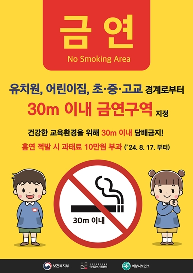 Àǿսú¸°Ç¼Ò´Â ±¹¹Î°Ç°ÁõÁø¹ý Á¦9Á¶ Á¦6Ç× °³Á¤À¸·Î 8¿ù 17ÀϺÎÅÍ ±³À°½Ã¼³ °æ°è¼±À¸·ÎºÎÅÍ 30mÀ̳»·Î ±Ý¿¬±¸¿ªÀÌ È®´ëµÈ´Ù°í ¹àÇû´Ù.