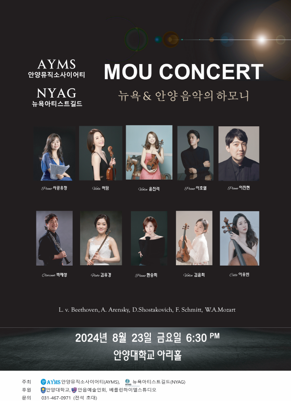 ¾È¾ç´ëÇб³(ÃÑÀå À層¼ö) À½¾ÇÇаú »ç°øÀ¯Á¤ ±³¼ö°¡ ´ëÇ¥¸¦ ¸Ã°í ÀÖ´Â ¾È¾ç¹ÂÁ÷¼Ò»çÀÌ¾îÆ¼(AYMS)¿Í ´º¿å¾ÆÆ¼½ºÆ®±æµå(NYAG)°¡ 23ÀÏ ¾÷¹«Çù¾àÀ» ü°áÇÏ°í ±â³ä ÄܼƮ¸¦ °³ÃÖÇÑ´Ù°í ¹àÇû´Ù.