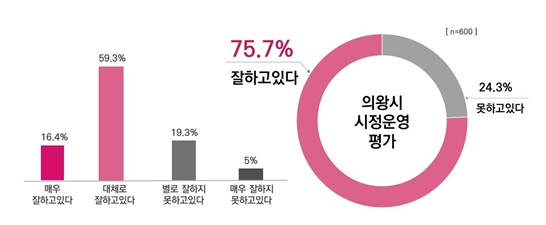 ¸ÕÀú, ¹Î¼±8±â ±è¼ºÁ¦ ½ÃÀå 2³â°£ÀÇ ½ÃÁ¤ ¿î¿µ Æò°¡¿¡¼´Â ¸Å¿ì ÀßÇϰí ÀÖ´Ù(16.4%)¿Í ´ëü·Î ÀßÇϰí ÀÖ´Ù(59.3%)´Â ±àÁ¤ÀûÀÎ Æò°¡°¡ 75.7%¿¡ ´ÞÇØ ºÎÁ¤Æò°¡(24.3%)ÀÇ 3¹è¸¦ ³Ñ´Â ¼öÄ¡¸¦ º¸¿´´Ù.
