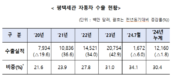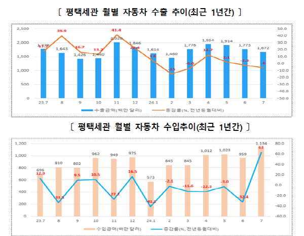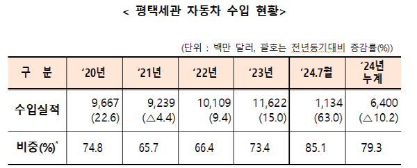 2024³â 7¿ù ÆòÅÃÁ÷ÇÒ¼¼°ü ÀÚµ¿Â÷¼öÃâÀÔ µ¿Çâ