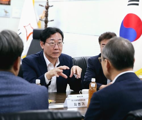 Á¤¸í±Ù È­¼º½ÃÀåÀÌ 6ÀÏ µ¿ÅºÃâÀå¼Ò¿¡¼­ »ï¼ºÀüÀÚ ÁöÇö±â ºÎ»çÀå(DSºÎ¹® »ó»ýÇù·Â¼¾ÅÍÀå) µî »ï¼ºÀüÀÚ °ü°èÀÚ¿Í ¸é´ãÀ» °®°í Çù·Â °­È­¿¡ ³ª¼¹´Ù.