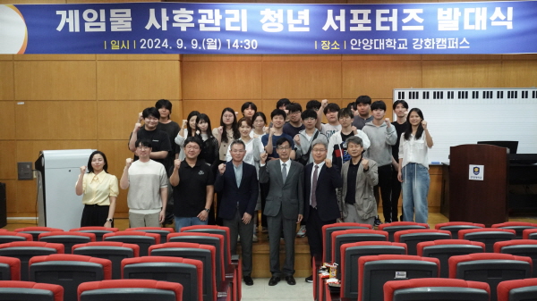 ¾È¾ç´ë °ÈÄ·ÆÛ½º 106È£¿¡¼ 9ÀÏ ¿ÀÈÄ 2½Ã 30ºÐ¿¡ ¿¸° ¡®°ÔÀÓ¹° »çÈİü¸® û³â ¼Æ÷ÅÍÁî ¹ß´ë½Ä¡¯¿¡´Â ¾È¾ç´ë Àå¿ëö ´ë¿ÜÇù·ÂºÎÃÑÀå°ú À̽ÂÈÆ °ÔÀÓÄÜÅÙÃ÷Çаú ÇаúÀå, ±è¼ºÈ£ °ÔÀÓÄÜÅÙÃ÷Çаú ±³¼ö, °ÔÀÓ¹°°ü¸®À§¿øÈ¸ ¿Â¶óÀδëÀÀÆÀ, û³â ¼Æ÷ÅÍÁî Âü¿© ´ëÇлý µî 30¿© ¸íÀÌ Âü¼®Çß´Ù.
