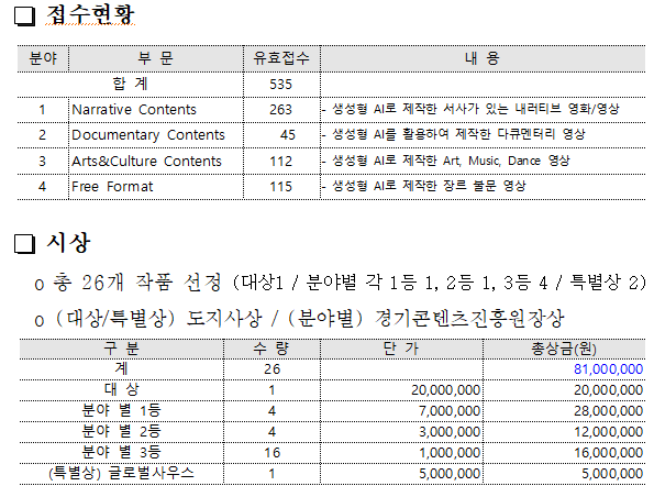 °Áö¼÷ °æ±âµµ ÄÜÅÙÃ÷»ê¾÷°úÀåÀº ¡°À̹ø °ø¸ð´Â ÇØ¿Ü âÀÛÀÚµéÀÇ °ü½ÉÀÌ ³ô¾ÒÀ¸¸ç, ƯÈ÷ ÀϹÝÀûÀÎ ¿µÈÁ¦¿¡¼ º¸±â Èûµç 3¼¼°è ±¹°¡¿¡¼µµ ¸¹Àº °ü½ÉÀ» º¸¿´´Ù¡±¶ó¸ç ¡°»ý¼ºÇü AI°¡ ÄÜÅÙÃ÷ âÀÛ¿¡ »õ·Î¿î ±âȸ¸¦ ºÎ¿©ÇÏ´Â ÁÁÀº »ç·Ê·Î ³²À» ¼ö ÀÖÀ» °ÍÀÌ´Ù¡±¶ó°í ¸»Çß´Ù.