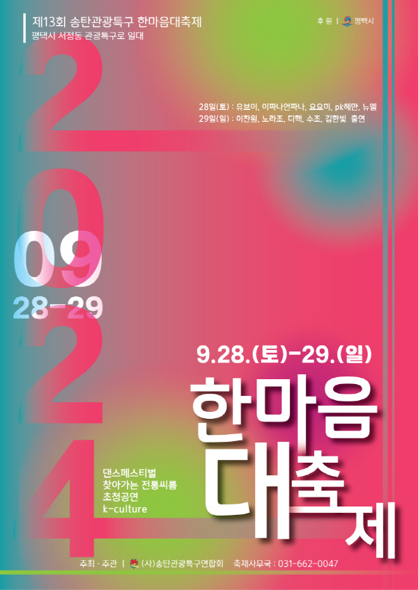 ÃàÁ¦ ù³¯ÀÎ 28ÀÏ¿¡´Â ½Ã¹ÎÂü¿© °ø¿¬, ÇѸ¶À½´í½ºÆä½ºÆ¼¹ú º»¼±, ±×¸®°í Àα⠰¡¼öµéÀÇ °ø¿¬µéÀÌ ÃàÁ¦ ºÐÀ§±â¸¦ °íÁ¶½Ã۸ç, µÑ° ³¯¿¡´Â °ü³» Çб³ µ¿¾Æ¸®ÀÇ °ø¿¬, ÇѸ¶À½´í½ºÆä½ºÆ¼¹ú °á¼± ¹«´ë, À¯¸í °¡¼öµéÀÇ °ø¿¬ÀÌ ÃàÁ¦ ´ë¹Ì¸¦ Àå½ÄÇÒ ¿¹Á¤ÀÌ´Ù. ¶ÇÇÑ ÀüÅë¾¾¸§Ã¼Çè µî ´Ù¾çÇÑ ÇÁ·Î±×·¥µµ ÁغñµÅ ÀÖ¾î ÃàÁ¦Àå¿¡¼ ¹æ¹®°´µéÀÌ ´Ù¾çÇϰí dz¼ºÇÑ °æÇèÀ» Áñ±æ ¼ö ÀÖ´Ù.