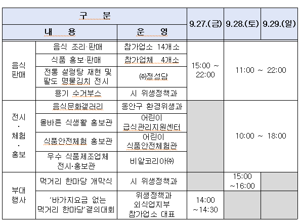 ¸Ô°Å¸® ÇѸ¶´çÀº ¡ãÀüÅë ¼³··ÅÁ Ưº° ÀçÇö µî À½½Ä Á¶¸®․ÆÇ¸Å ºÎ½º(15°³ ¾÷ü) ¡ã¾È¾ç½Ã ¿ì¼ö ½ÄǰÁ¦Á¶¾÷ü È«º¸ ºÎ½º ¡ã¾î¸°ÀÌ ½Äǰ ¾ÈÀüüÇè°ü ¡ãÀ½½Ä¹®È °¶·¯¸®(À½½Ä¹®È Æ÷½ºÅÍ °ø¸ðÀü ¼ö»óÀÛ) µîÀ¸·Î ÁøÇàµÈ´Ù.