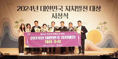 ½Å»óÁø ¼º³²½ÃÀåÀº ¡°´ëÇѹα¹ ÀÚÄ¡¹ßÀü ´ë»ó ±âÃÊÀÚÄ¡ ºÎ¹® ¼ö»óÀº ¼º³²ÀÇ ¹ßÀüÀ» À§ÇØ ½Ã¹Îµé°ú ÇÔ²² ¸ðµç °øÁ÷ÀÚ°¡ ³ë·ÂÇØ ¿Â °á°ú¡±¶ó¸é¼ ¡°¾ÕÀ¸·Îµµ ¹Î¼± 8±â ¼º³²½ÃÁ¤ÀÇ ºñÀüÀ» ÀÌ·ï ³ª°¥ ¼ö ÀÖµµ·Ï ÃÖ¼±ÀÇ ³ë·ÂÀ» ´ÙÇϰڴ١±°í ¸»Çß´Ù.