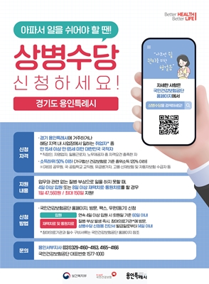 »óº´¼ö´çÀº ±Ù·ÎÀÚ°¡ ¾÷¹«¿Í °ü·Ã ¾ø´Â Áúº´À̳ª ºÎ»óÀ¸·Î ÀÏÀ» ÇÏÁö ¸øÇÒ ¶§ Ä¡·á¿¡ ÁýÁßÇÒ ¼ö ÀÖµµ·Ï ÃÖÀúÀÓ±ÝÀÇ 60%¸¦ Áö±ÞÇÏ´Â Á¦µµ´Ù. Áö¿ø ´ë»óÀº 15¼¼ ÀÌ»ó 65¼¼ ¹Ì¸¸ÀÇ ±âÁØÁßÀ§¼Òµæ 120% (¼ÒµæÇÏÀ§ 50%) ÀÌÇÏ ±Ù·ÎÀÚ´Ù.