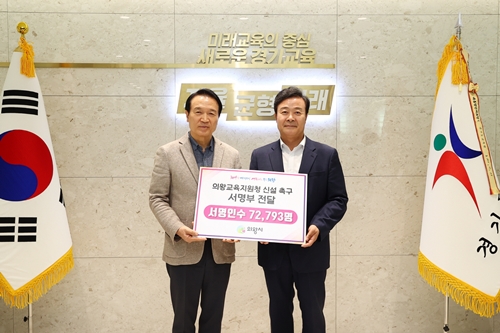ÀÌ¿¡ Àǿսô Áö³­ÇØ 4¿ùºÎÅÍ 7¿ù±îÁö Àǿձ³À°Áö¿øÃ» ½Å¼³À» À§ÇÑ ½Ã¹Î ¼­¸í¿îµ¿À» ½Ç½ÃÇØ ÃÑ 72,793¸íÀÌ ¼­¸í¿îµ¿¿¡ µ¿ÂüÇß´Ù. ±è ½ÃÀåÀº ½Ã¹ÎµéÀÇ ¿°¿øÀ» ´ãÀº ¼­¸íºÎ¸¦ Áö³­ÇØ 8¿ù ÀÓÅÂÈñ °æ±âµµ±³À°°¨À» ¸¸³ª Á÷Á¢ Àü´ÞÇßÀ¸¸ç, À̾î Áö³­ÇØ 11¿ù¿¡´Â Àå»óÀ± ±³À°ºÎ Â÷°üÀ» ¸¸³ª ¼­¸íºÎ¸¦ Àü´ÞÇϸç Àǿձ³À°Áö¿øÃ» ½Å¼³À» °­·ÂÈ÷ ¿ä±¸ÇÑ ¹Ù ÀÖ´Ù.