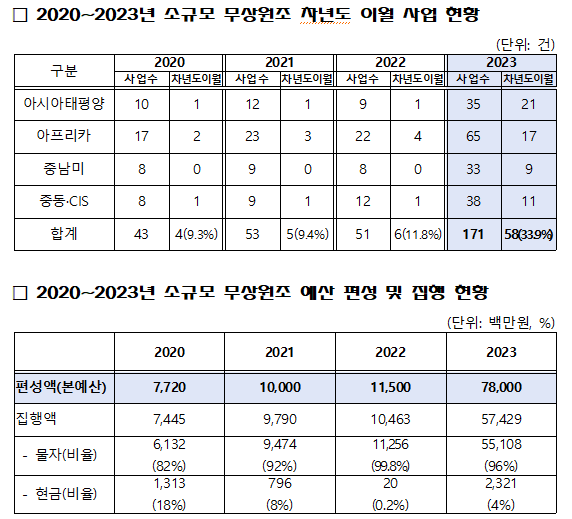 ¹®Á¦´Â Åõ¸í¼ºÀÌ´Ù. ¼Ò±Ô¸ð ¹«»ó¿øÁ¶ »ç¾÷Àº ODA(°øÀû°³¹ß¿øÁ¶) »ç¾÷°ú´Â ´Þ¸® »ç¾÷ ¼¼ºÎ ³»¿ª¿¡ ´ëÇÑ ±¹È¸ ½ÉÀǸ¦ °ÅÄ¡Áö ¾Ê´Â´Ù. ´Ù³â¿¡ °ÉÃÄ ÀÌ·ç¾îÁö´Â ´Ù¸¥ ODA¿Í ´Þ¸® 1ȸ¼º ¹× ´Ü³âµµ ³»¿¡¼ ÀÇÀüÂ÷·®°ú °°Àº Çö¹°À» ÁÖ·Î Áö¿øÇÏ´Â ¼Ò±Ô¸ð »ç¾÷À¸·Î, ¼ö¿ø±¹°ú Áö¿ø³»¿ëµµ ¿Ü±³ºÎ°¡ °áÁ¤ÇÑ´Ù.